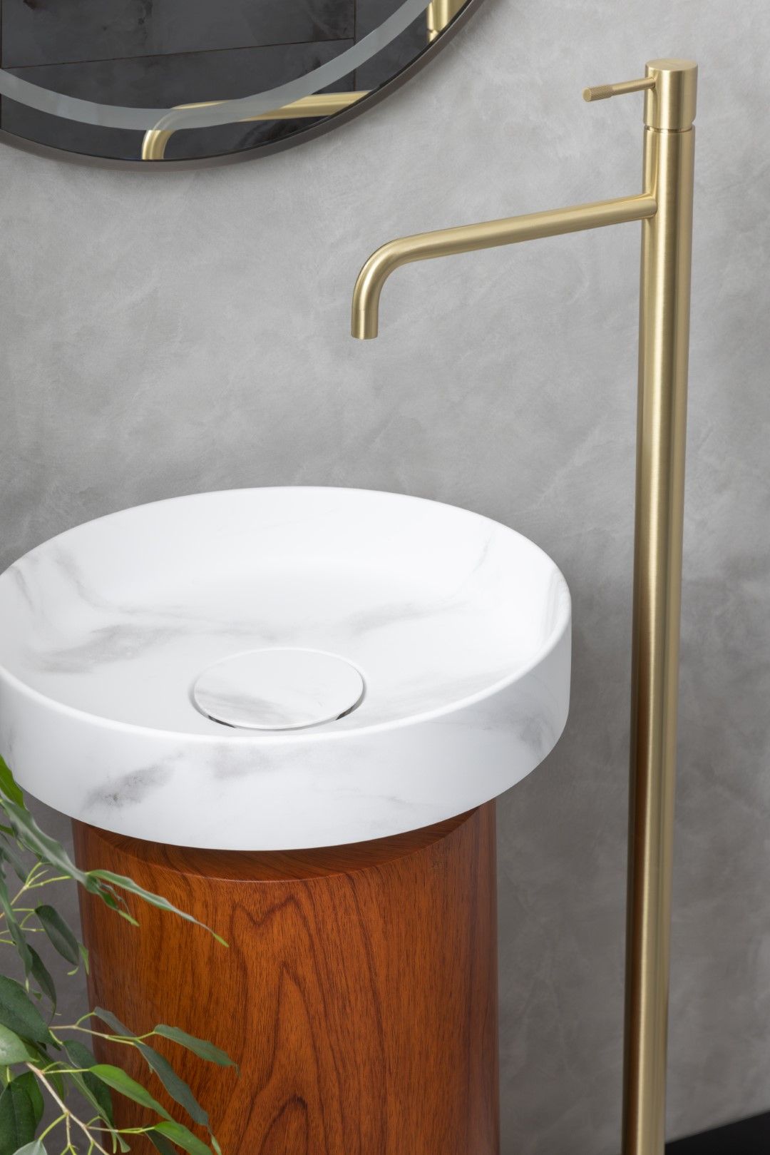 Накладная раковина с пьедесталом золото Armadi Art Sole Corian 801-CLCT+801-Base-Rwood Calacatta/красное дерево купить