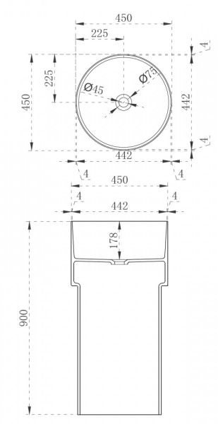 Напольная раковина ABBER Kristall 45x90см чёрный AT2701Onyx