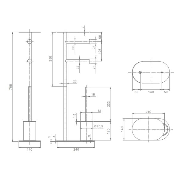 R300.31.09 Многофункциональная стойка для ванной комнаты: ершик, полочка, держатель для туалетной бумаги. Изготовлена из нержавеющей стали. Форма округлая, цвет - "графит". В комплекте 2 сменные щетки - силиконовая и щетинная.