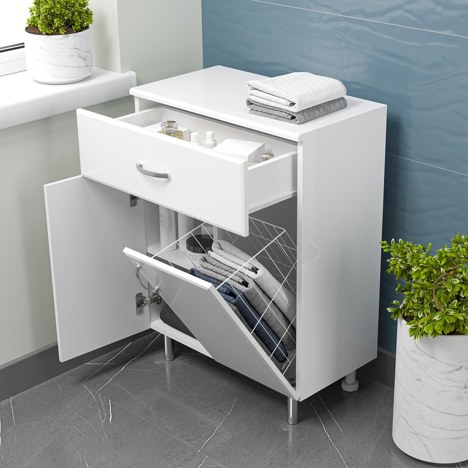 Напольная тумба Misty Люси с бельевой корзиной 60см белый купить