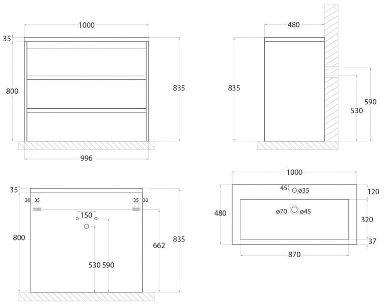 Тумба под раковину Art&Max выполнена в современном стиле и прекрасно впишется в интерьер любой ванной комнаты. Напольная конструкция обеспечивает легкий монтаж и не требует специального ремонта в помещении. Модель оснащена тремя выдвижными ящиками с доводчиками. Фасад изделия выполнен из ЛДСП.Тумба может использоваться вместе с раковиной AM-LAV-1000-MR-A.Раковина и смеситель в комплект поставки не входят и приобретаются отдельно.Особенности: