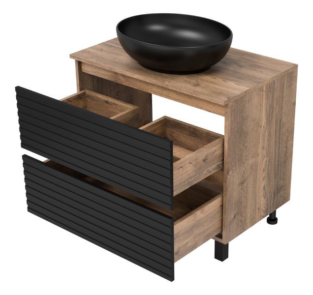 Напольная тумба под раковину Brevita Dakota DAK-07080-19/02-2Я 80см дуб Галифакс олово/чёрный