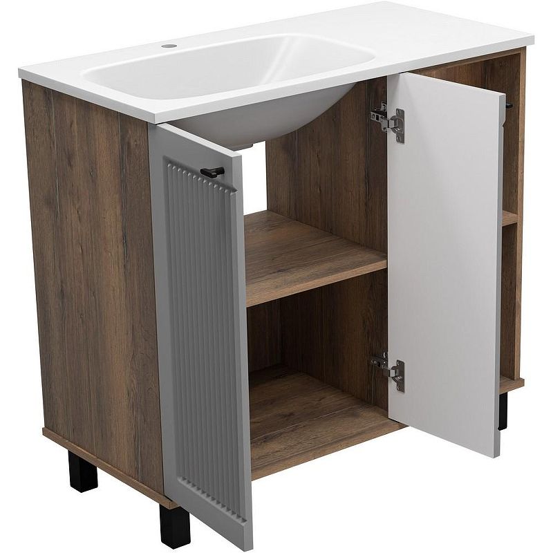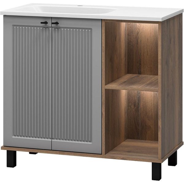 Напольная тумба под раковину Brevita Lumus 90 L УТ000025489 Серая матовая Дуб Галифакс олово купить