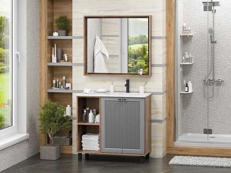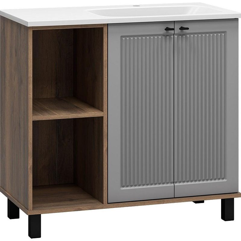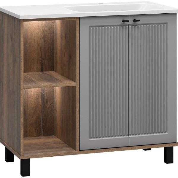 Напольная тумба под раковину Brevita Lumus 90 R УТ000025490 Серая матовая Дуб Галифакс олово купить