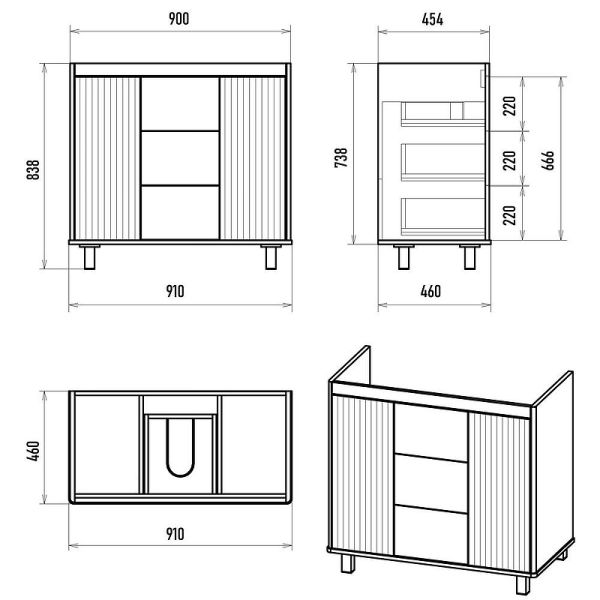 Габариты корпуса тумбы (ШхВхД): 910х838х460 мм.