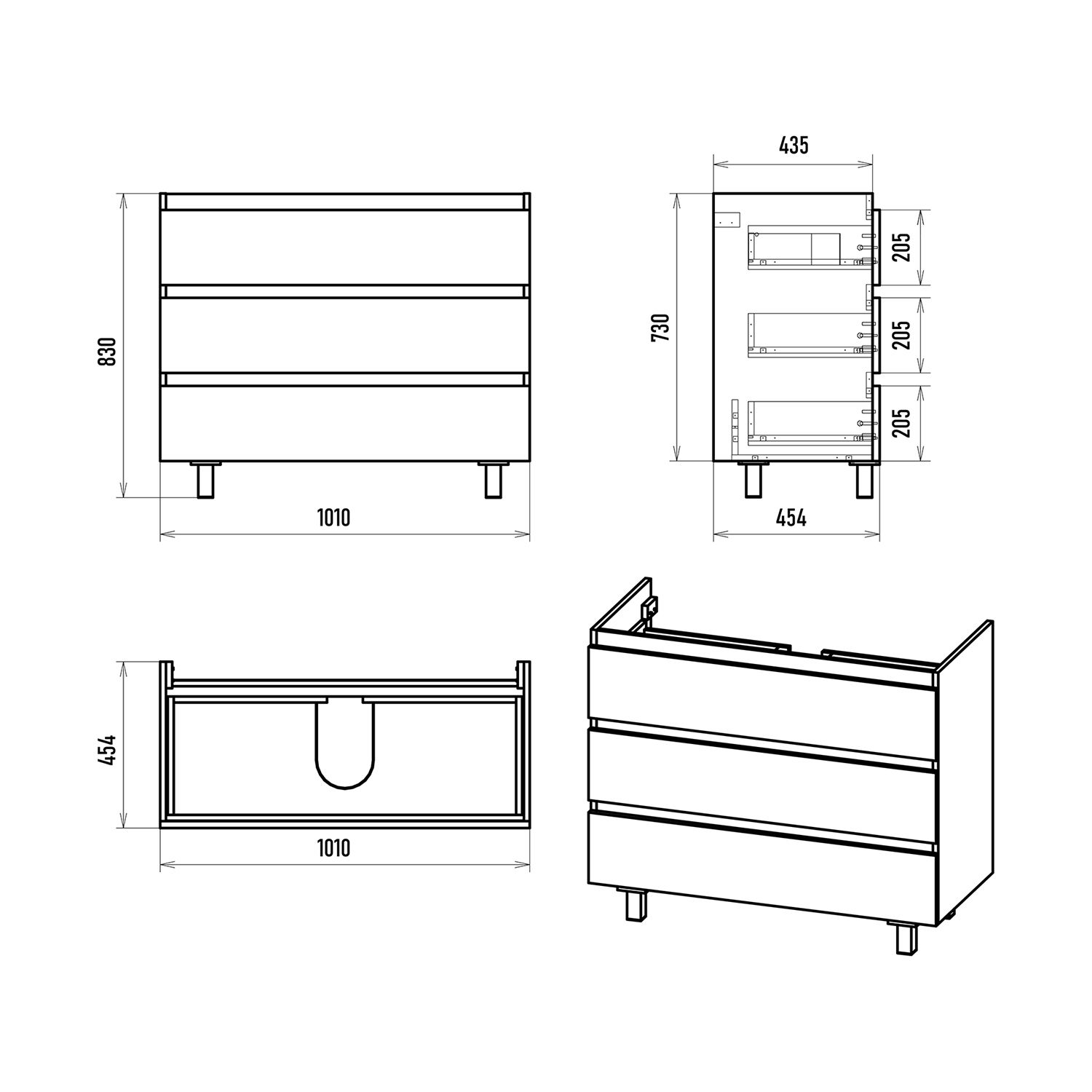 Размер мебели, мм (ш/г/в): 1010x454x730
