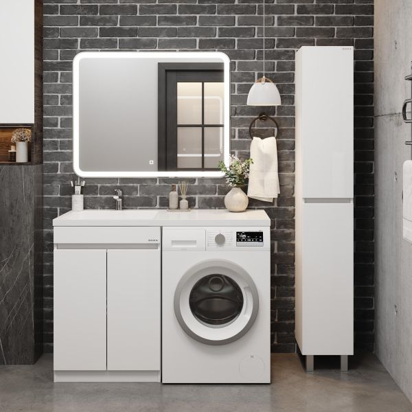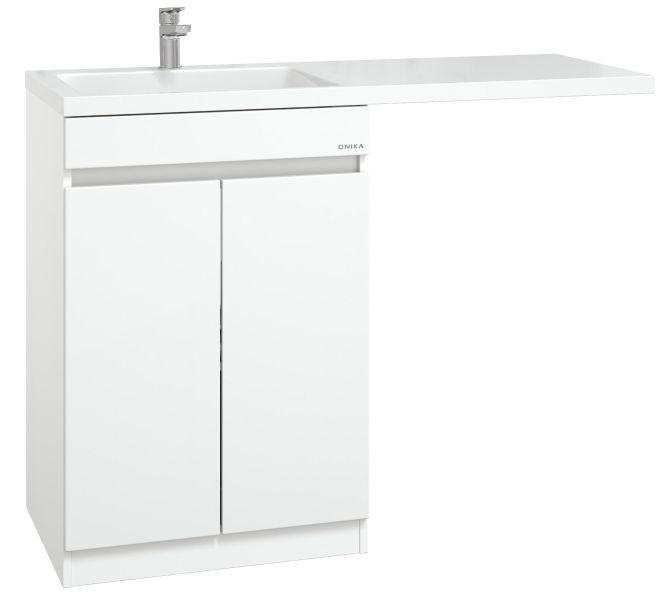 Напольная тумба Onika Милтон Нова 58 станет отличным решением для совмещения со стиральной машиной.
