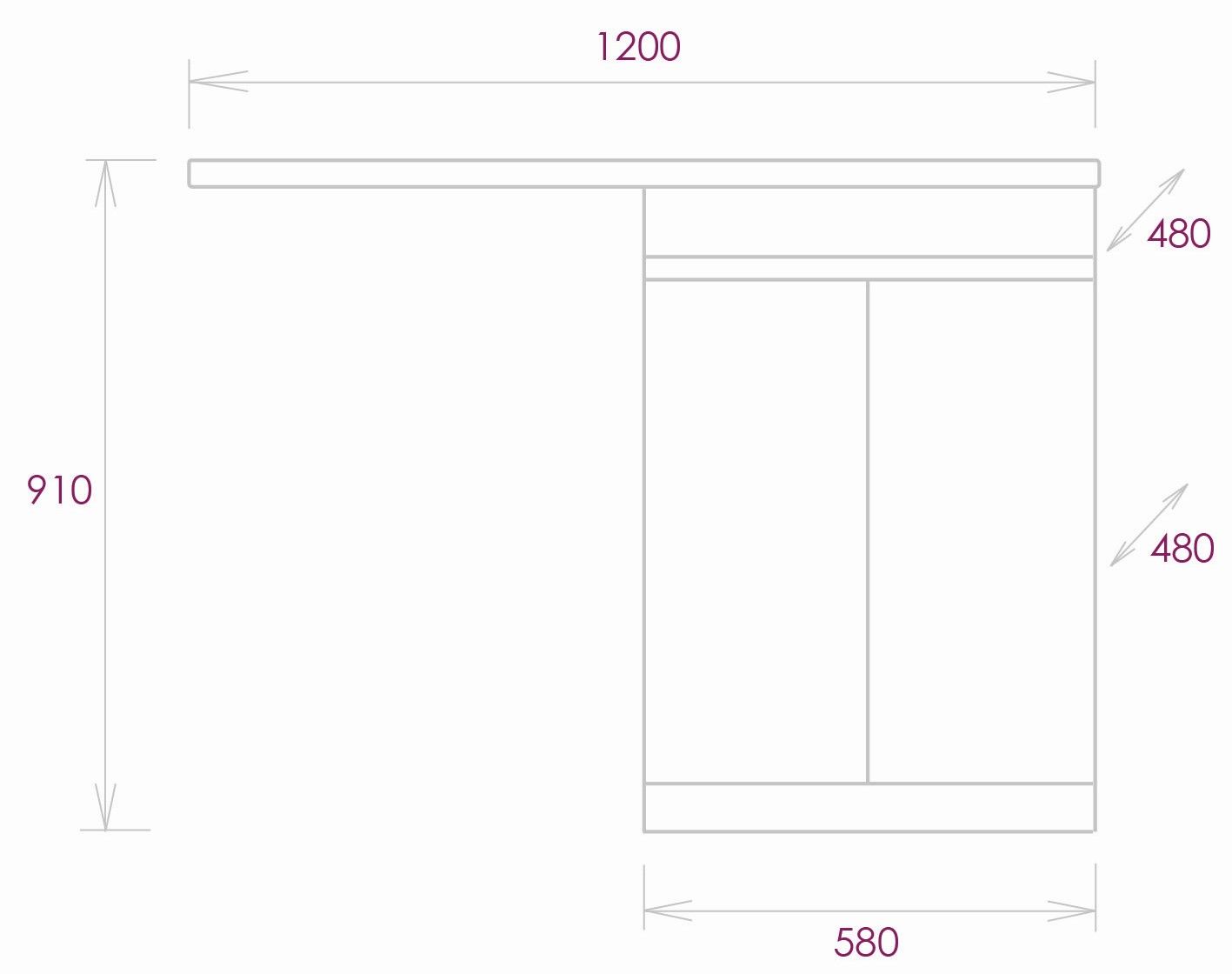 Размеры тумбы без учета раковины 58х48х87 см.