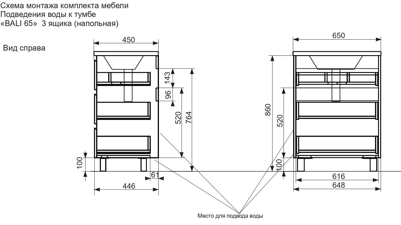 Напольная тумба под раковину Эстет Bali New ФР-00009962 65см три ящика белый купить