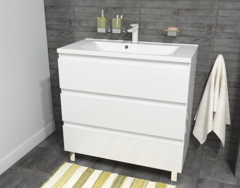 Современный дизайн серии Bali создан для ценителей минимализма. Четкие геометрические формы, бесшумное закрывание ящиков, вместительная тумба с верхним и нижним ящиками создает дополнительное пространство, где будут надежно скрыты от влаги банные принадлежности.