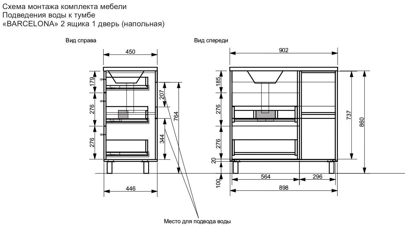 Напольная тумба под раковину Эстет Barcelona ФР-00003583 П 90см два ящика одна дверь купить