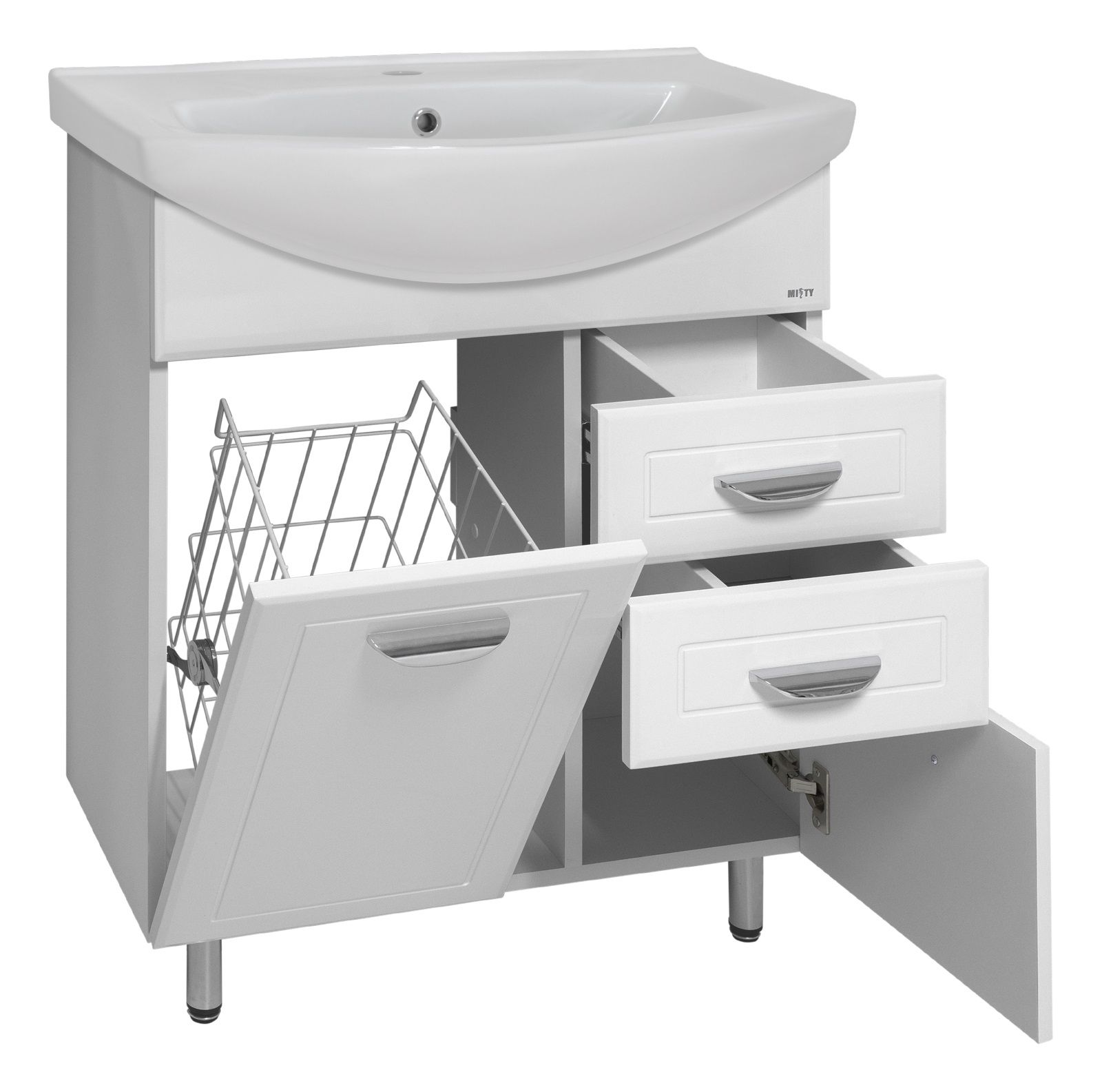 Напольная тумба под раковину Misty Дрея 65см с бельевой корзиной белый купить