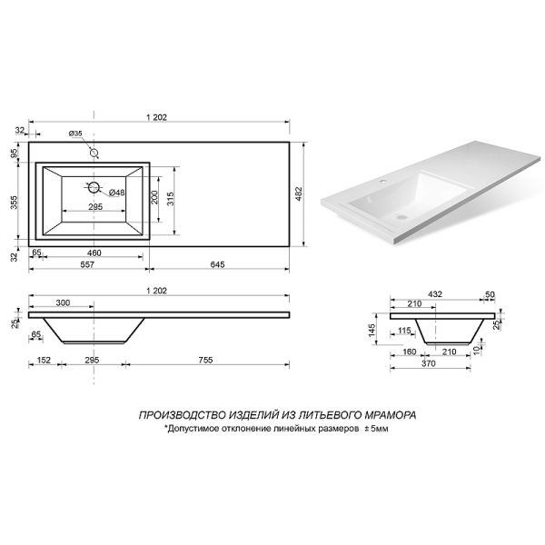 Материал: литьевой мрамор.