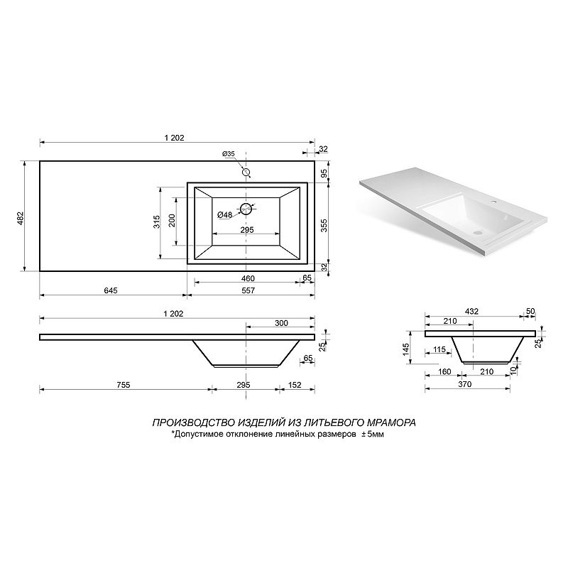Габариты (ШхВхГ): 1202х145х482 мм.