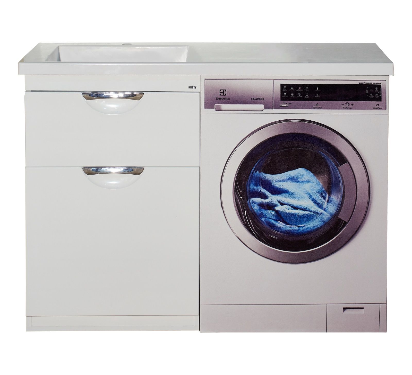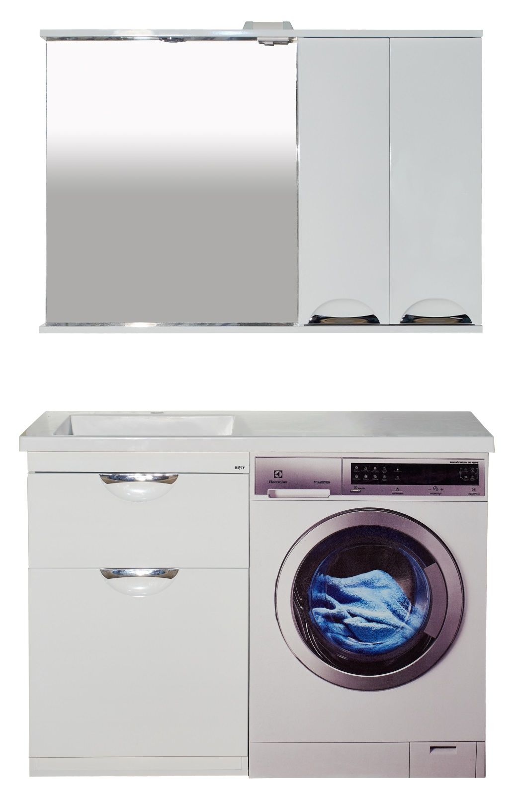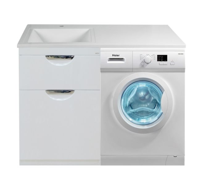 Напольная тумба под раковину Misty Куба под стиральную машину 60см с бельевой корзиной белый купить