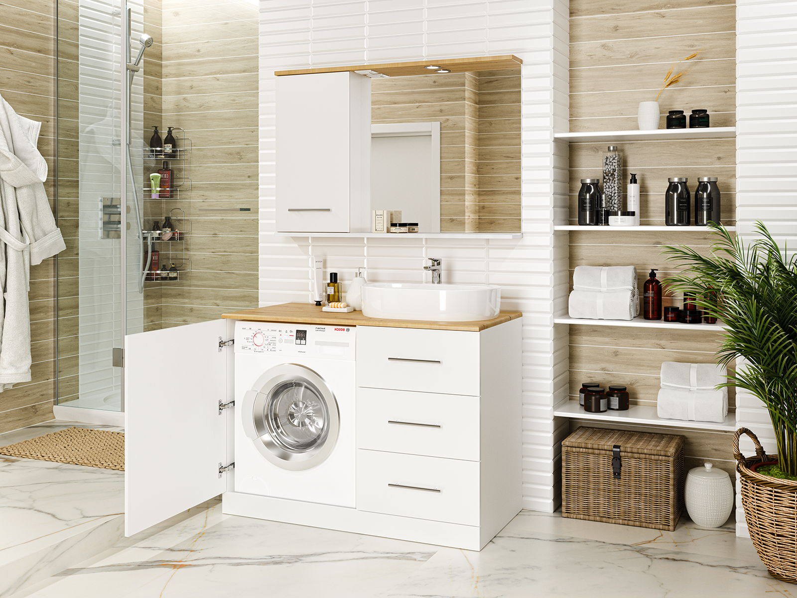 Напольная тумба под раковину Misty Респект под стиральную машину 120см правая белый/дуб Артизан