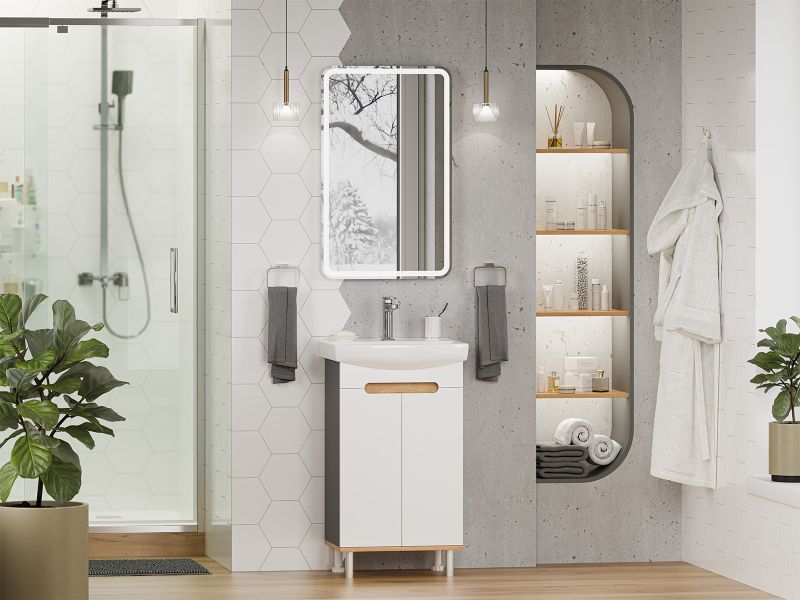 Напольная тумба под раковину Misty Сканди 50см белый/дуб крафт золотой/антрацит купить