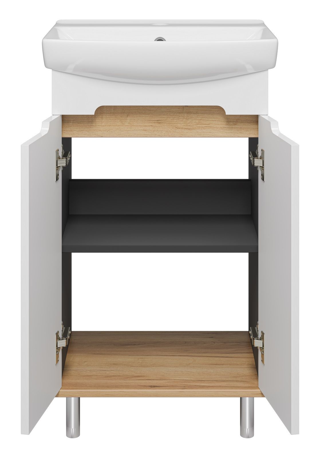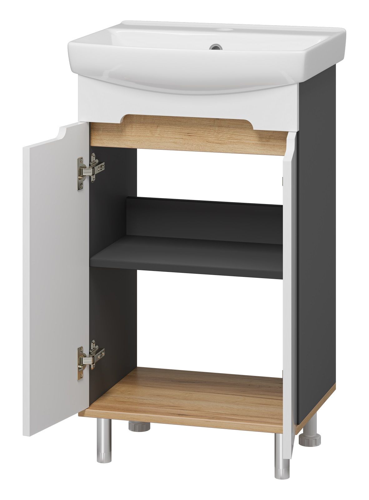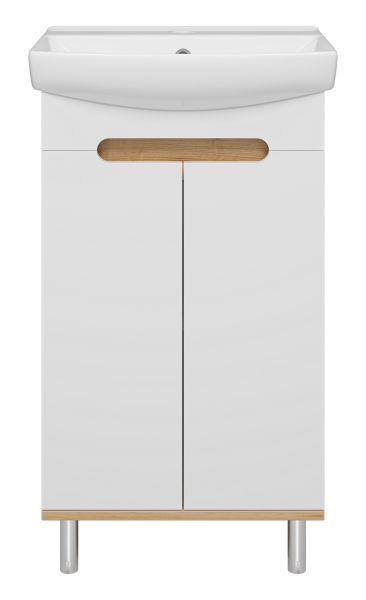 Напольная тумба под раковину Misty Сканди 50см белый/дуб крафт золотой/антрацит