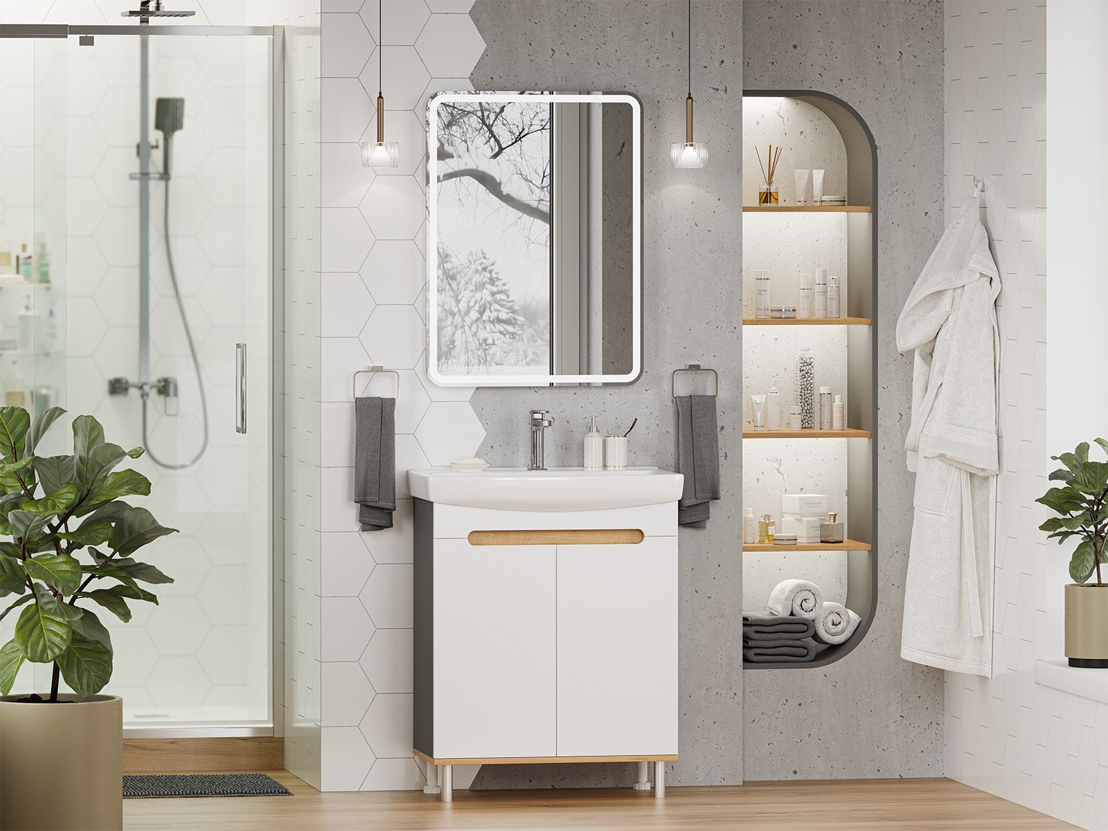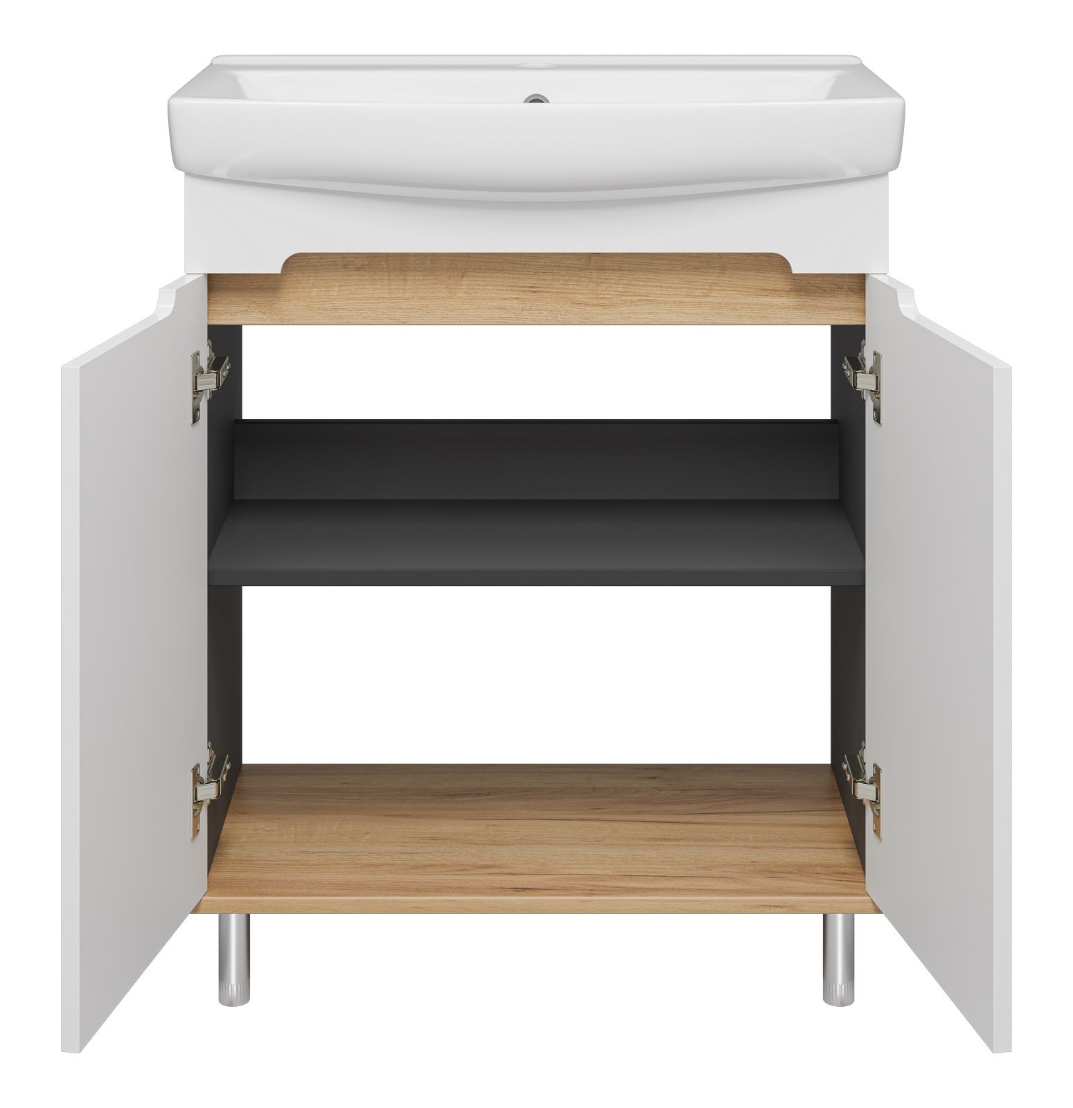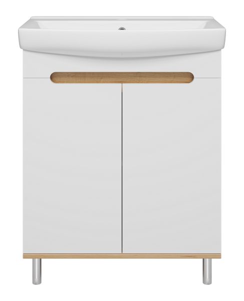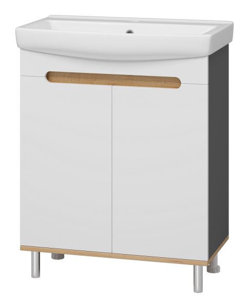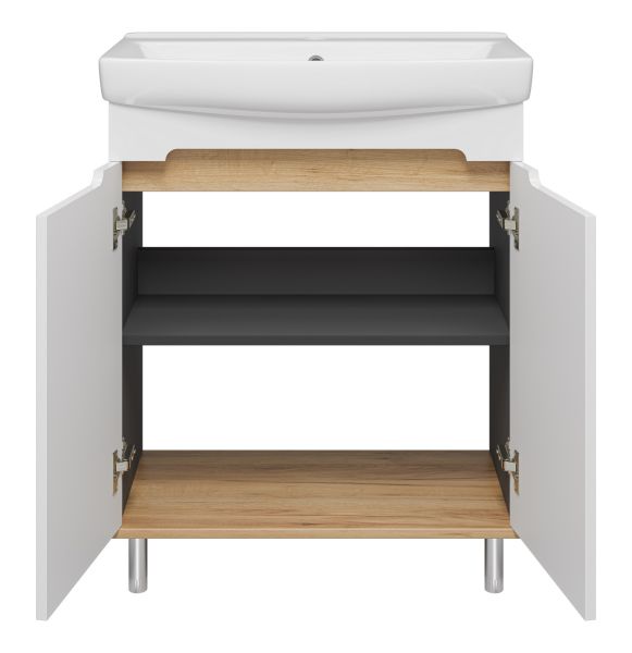Напольная тумба под раковину Misty Сканди 70см белый/дуб крафт золотой/антрацит