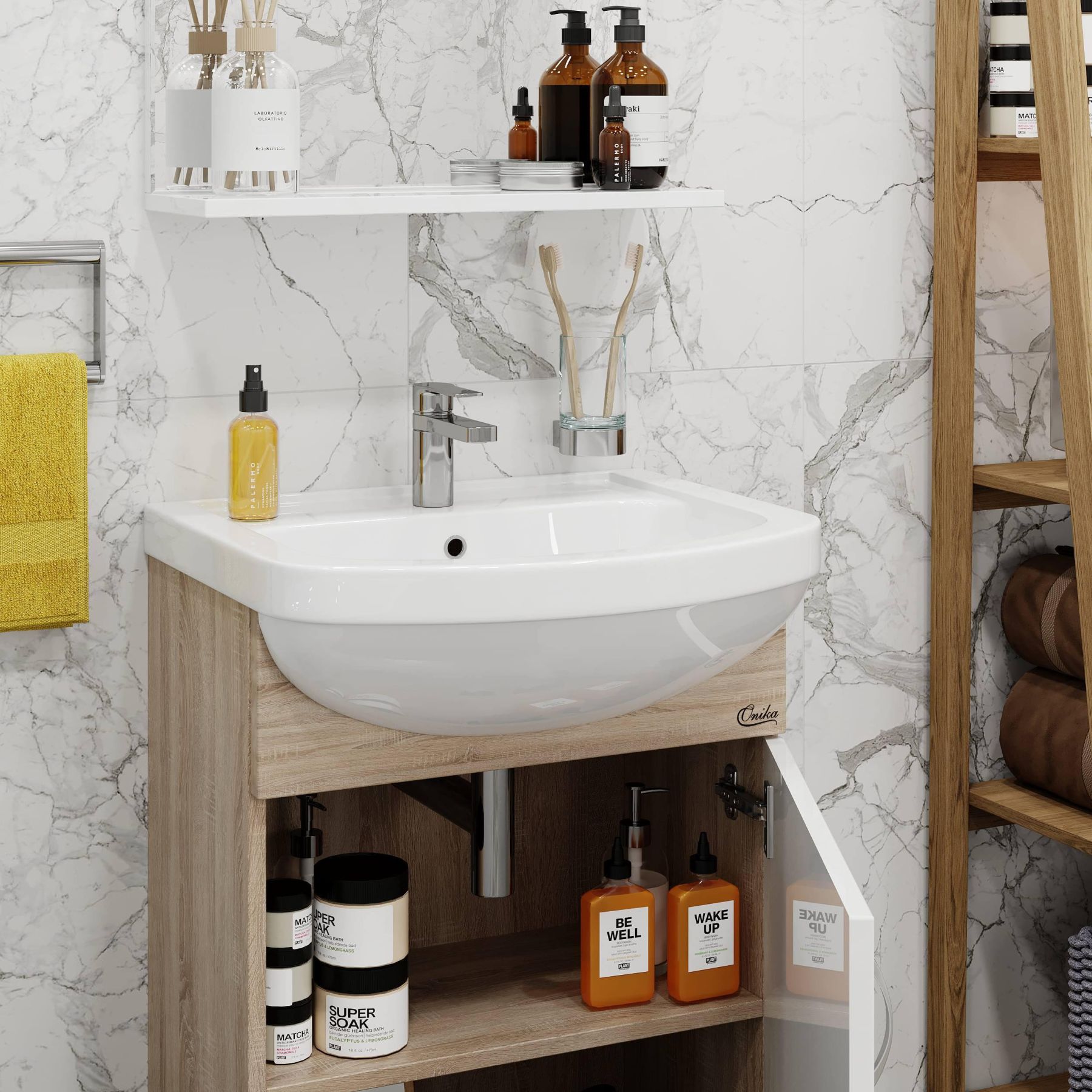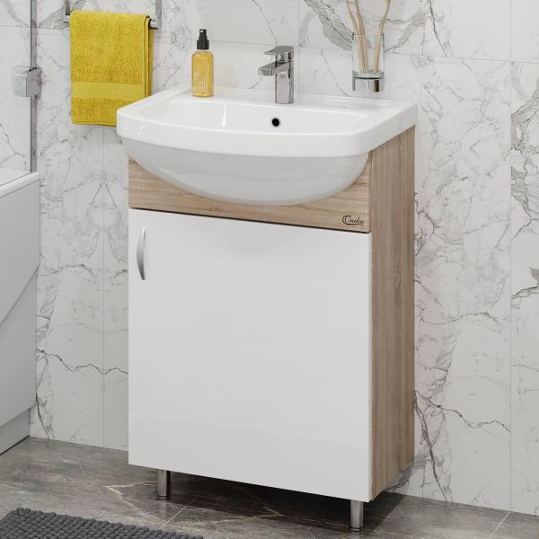 Напольная тумба под раковину Onika Эко 105207 52см белый/дуб сонома купить