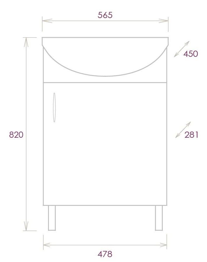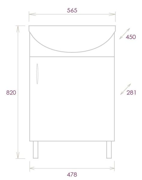 Размеры тумбы без учета раковины и ножек 48x28x68 cм.