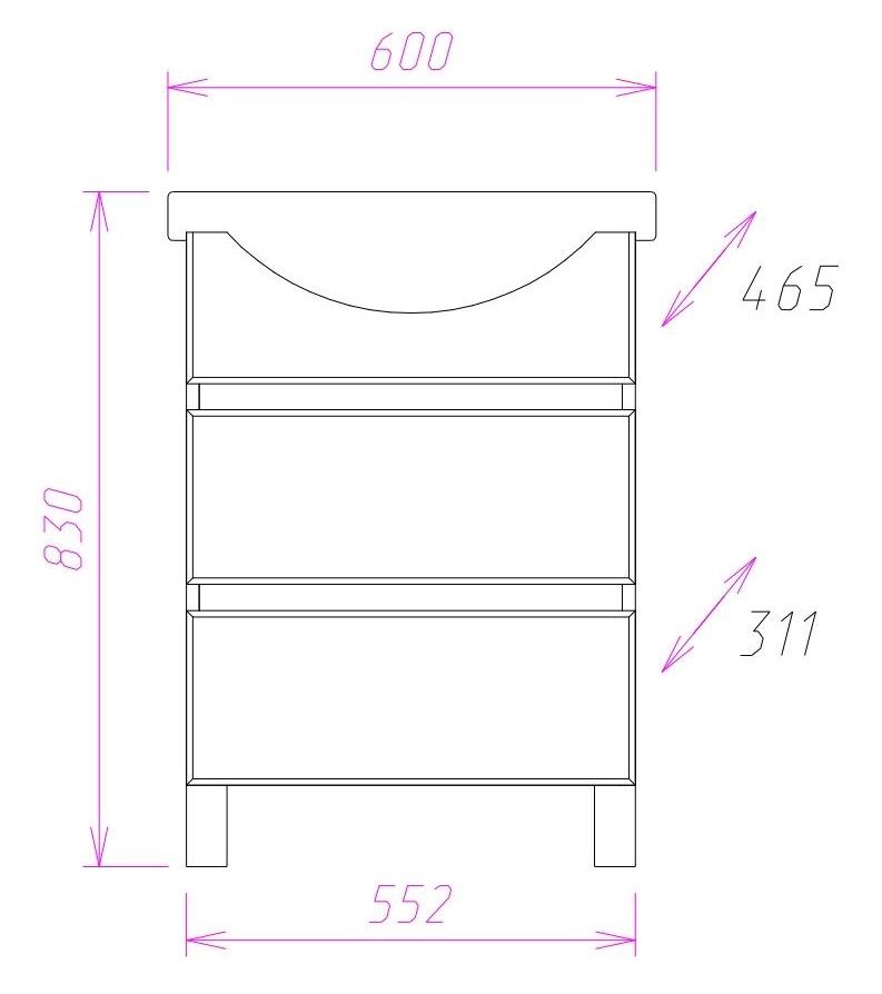 Размеры тумбы без учета раковины и ножек 55x31x68 cм.