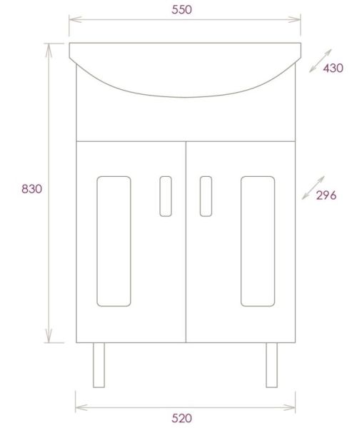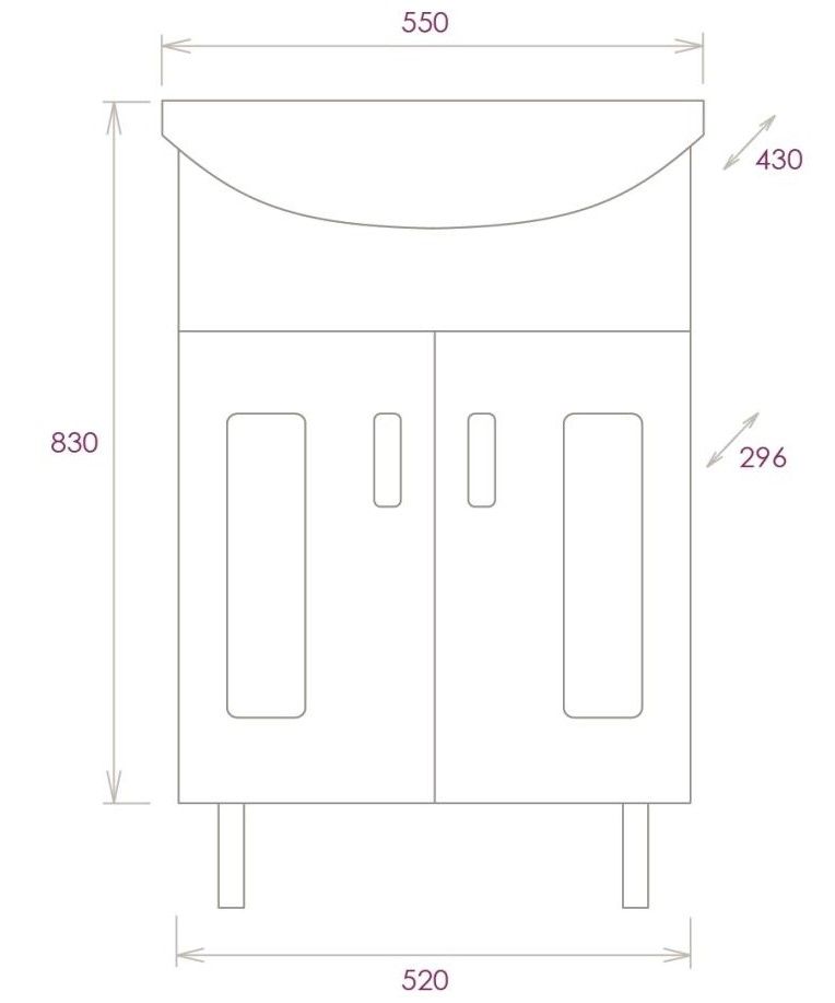 Размеры тумбы без учета раковины и ножек: 52x30x68 см.