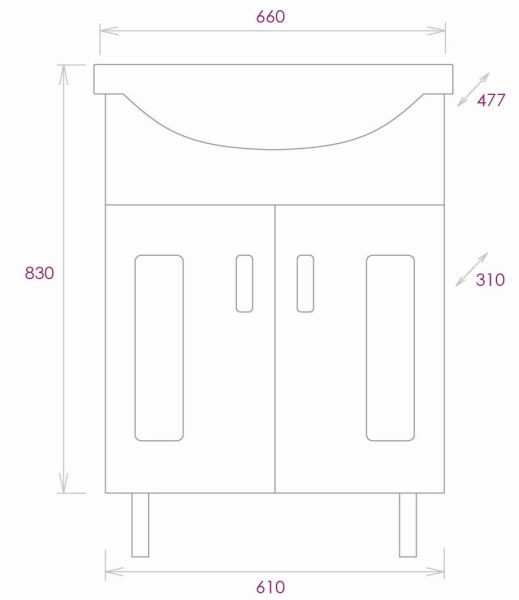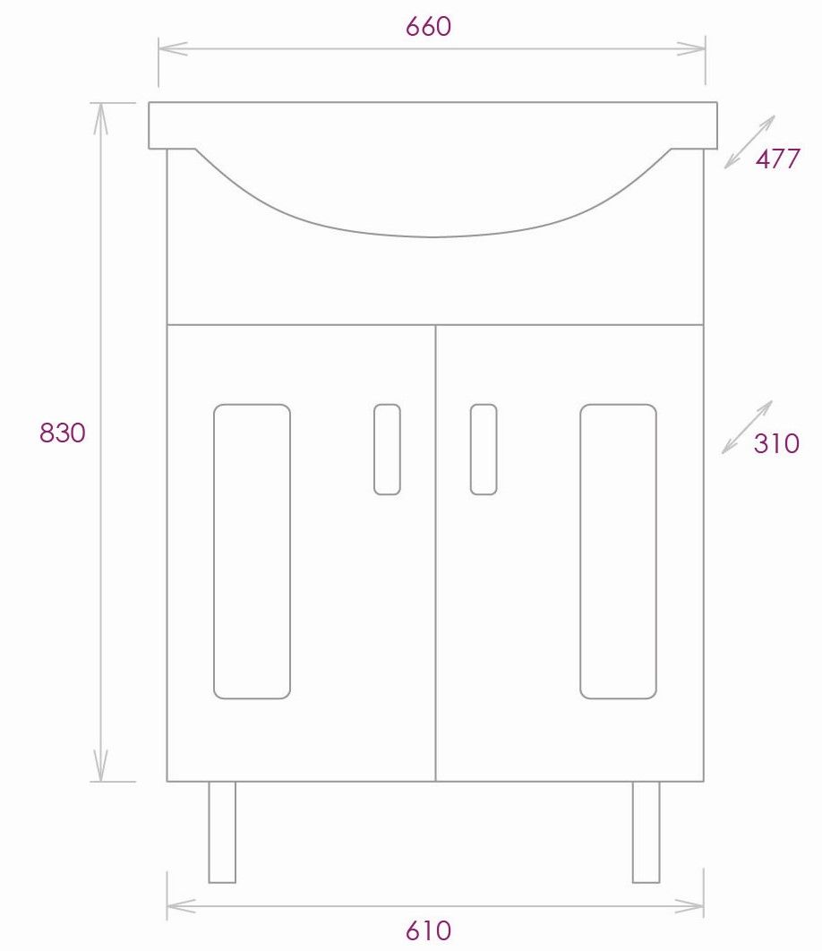 Размеры тумбы без учета раковины и ножек: 61х31х68 см.