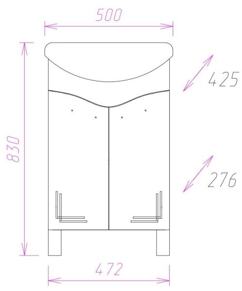Размеры тумбы без учета раковины и ножек: 47х28х68 см.