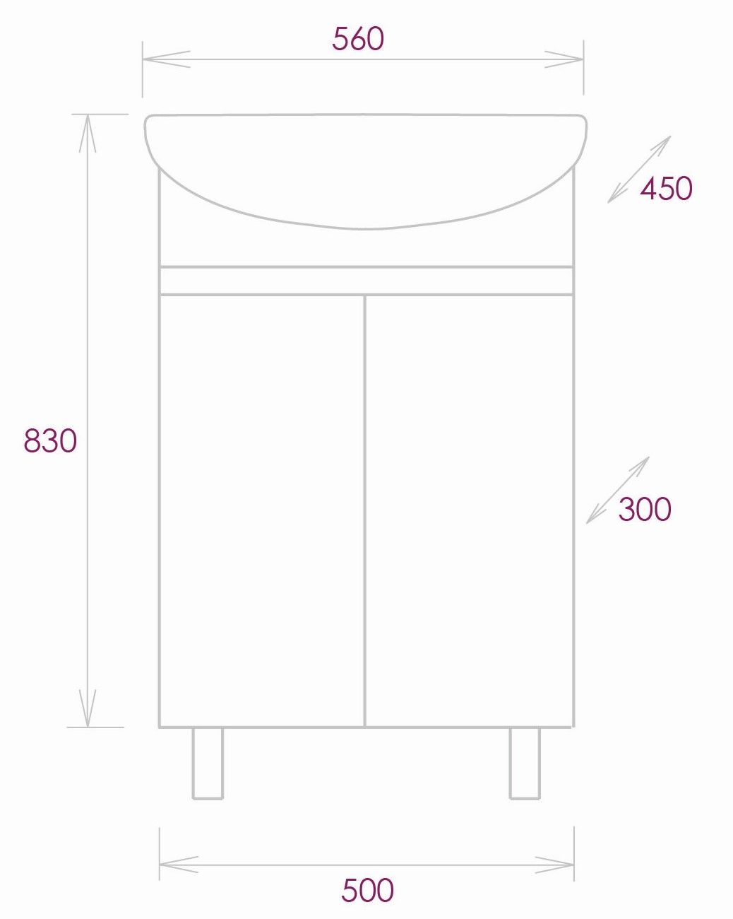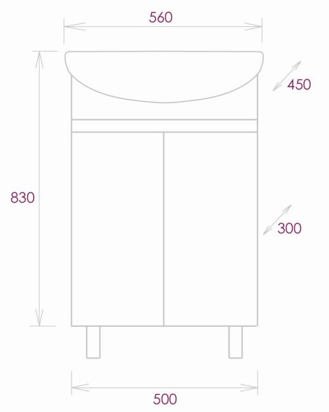 Размеры тумбы без учета раковины и ножек 50х30х68см.