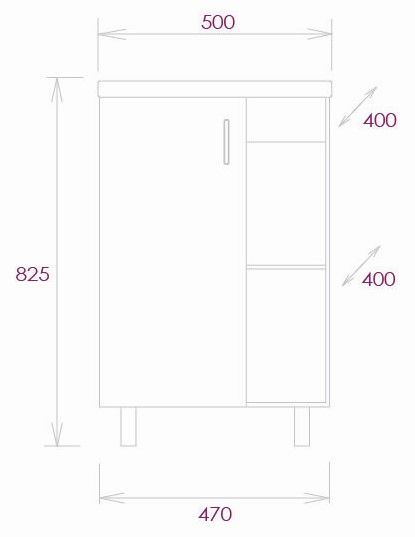 Размеры тумбы без учета раковины и ножек 47x40x68 cм.