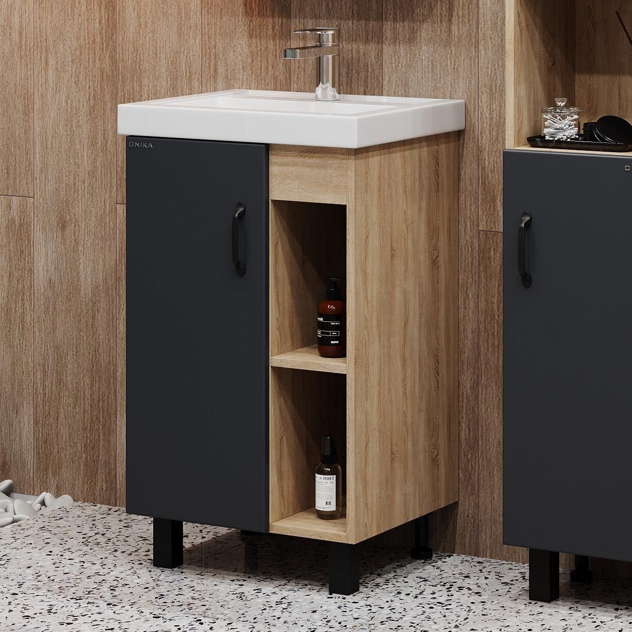 Напольная тумба под раковину Onika Тимбер 105035 50см серый матовый/дуб сонома купить