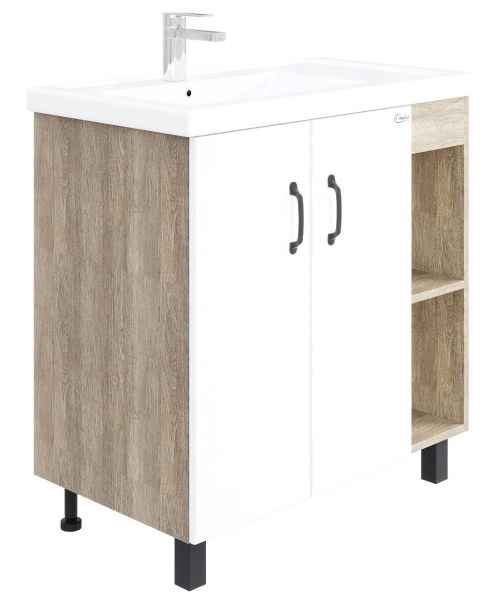 Напольная тумба под раковину Onika Тимбер 108045 правая 80см белый матовый/дуб сонома