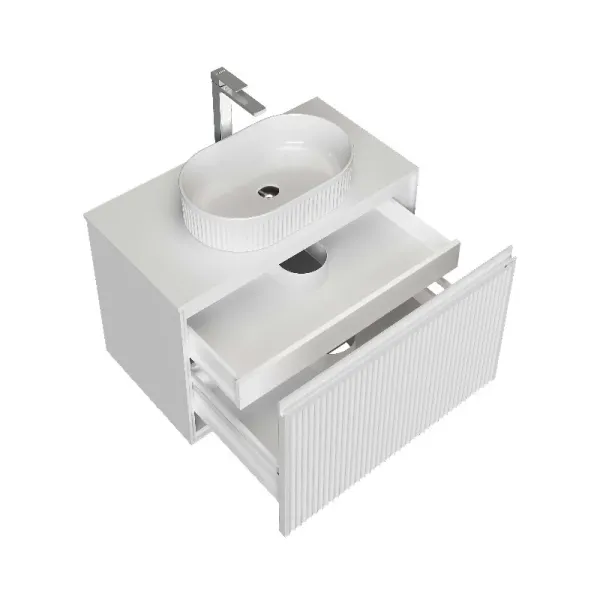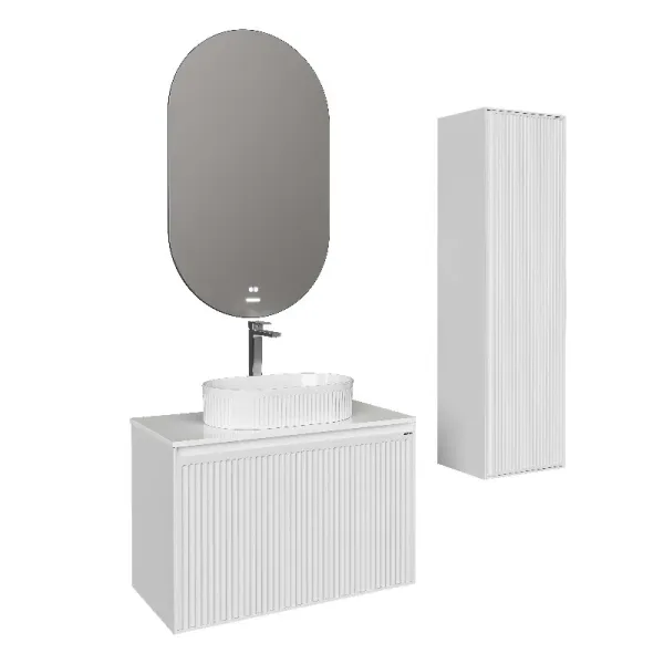 Корпус тумбы выполнен из ЛДСП, фасад - из ЛМДФ в пленке, устойчивых к механическим воздействиям, перепадам температур и высокой влажности.