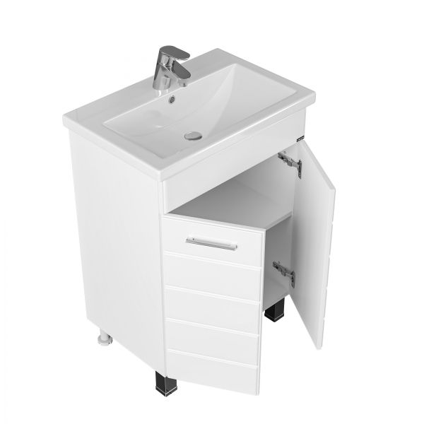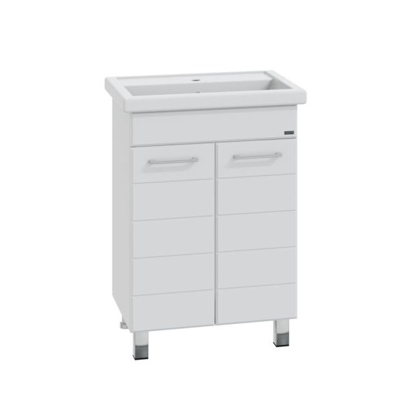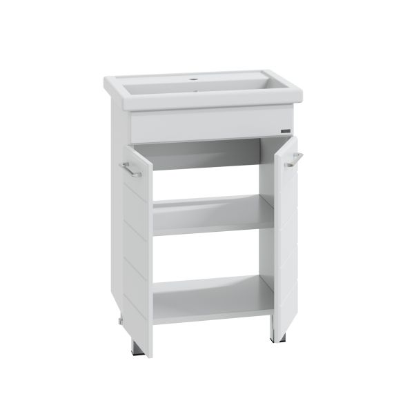 Тумба напольная Омега 60 для умывальника Фостер 60. Корпус изделия выполнен из влагостойкого ЛДСП, фасад из МДФ и покрыт пленкой. Она оборудована двумя дверцами, что обеспечивает лёгкий доступ к её содержимому.