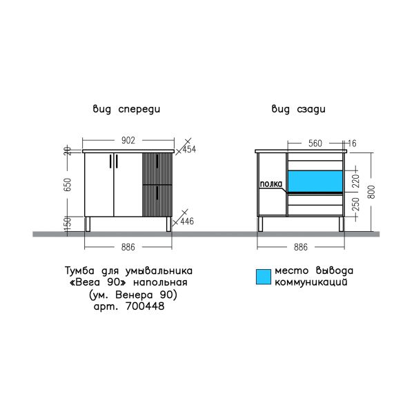 Напольная тумба под раковину Санта Вега 700448 90 см белый