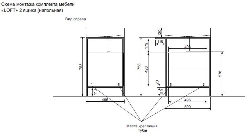 • Тумба напольная 2 ящика (ш/в/г): 708х758х495 мм