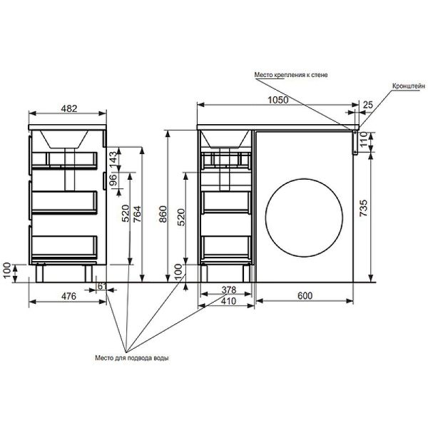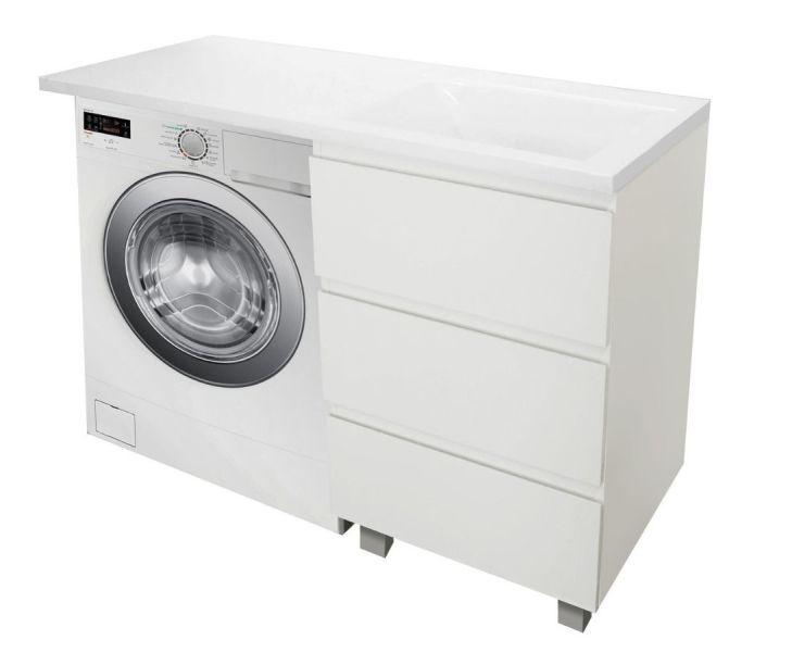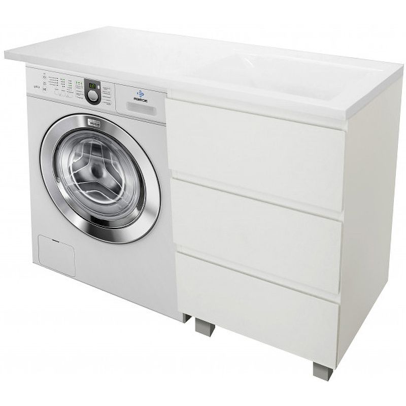 Приоритетом в выборе тумбы с раковиной является площадь ванной комнаты. Функциональная тумба с тремя ящиками решит вопрос для большинства покупателей. Тумба укомплектована раковиной из литьевого мрамора с удобной чашей, стиральная машина устанавливается под столешницей. Три ящика позволят распределить как крупные, так и мелкие вещи.