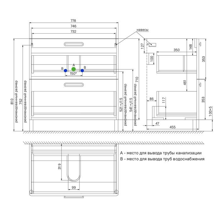 Два выдвижных ящика закрываются плавно и бесшумно благодаря высококачественным скрытым направляющим с доводчиками немецкого производства.