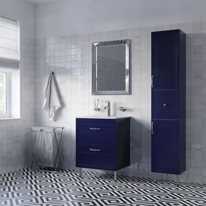 Компактная напольная тумба Oxford в красивом синем оттенке – модное сочетание классического стиля и стиля ретро. Она органично впишется в интерьер благодаря элегантному фрезерованному фасаду и узнаваемому дизайну. В комплекте плоский эргономичный умывальник.