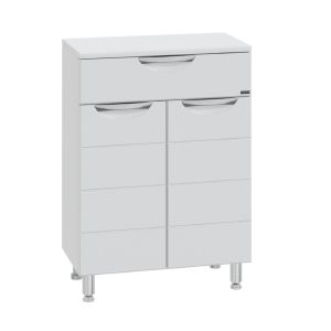 Комплектация: Ручка хром - 3 шт, выдвижной ящик с шариковыми направляющими 1 шт, на дверках петли плавного закрывания, ножка хром - 2 шт, ножка пластик - 2 шт Тумба напольная СаНта Родос 60 с 1 ящиком напольная предназначена для хранения различных мелочей в ванной комнате. Комод в ванную комнату изготовлен из влагостойких материалов, фасад и столешница комода для ванны изготовлена из МДФ, корпус из влагостойкого ЛДСП. Комод для ванной комнаты оснащен ящиком полного выдвижения ( без плавного закрывания). Ножки у комода для ванны идут в комплекте. Купить комод для ванной комнаты вы можете оформив заказ у нас на сайте. Также вы можете подобрать к комоду тумбу с раковиной из коллекции Родос.