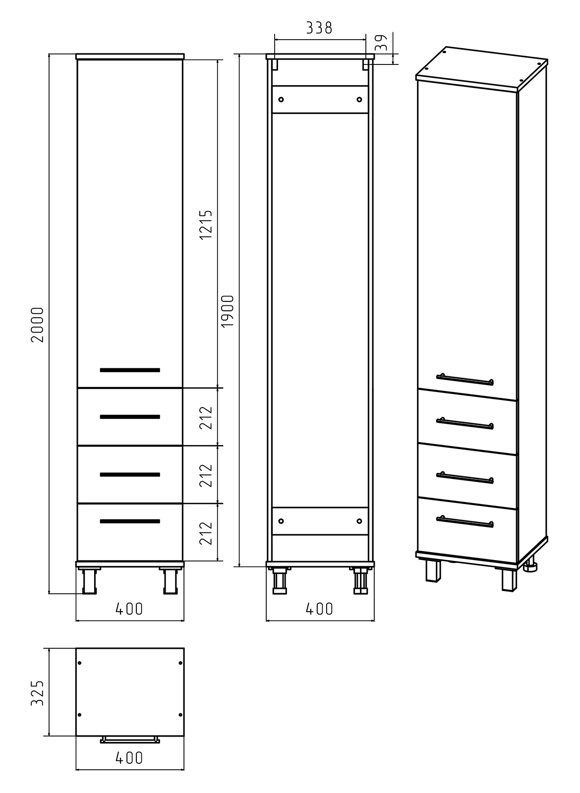 Напольный шкаф - пенал Misty Терра 40см с тремя ящиками правый серый купить