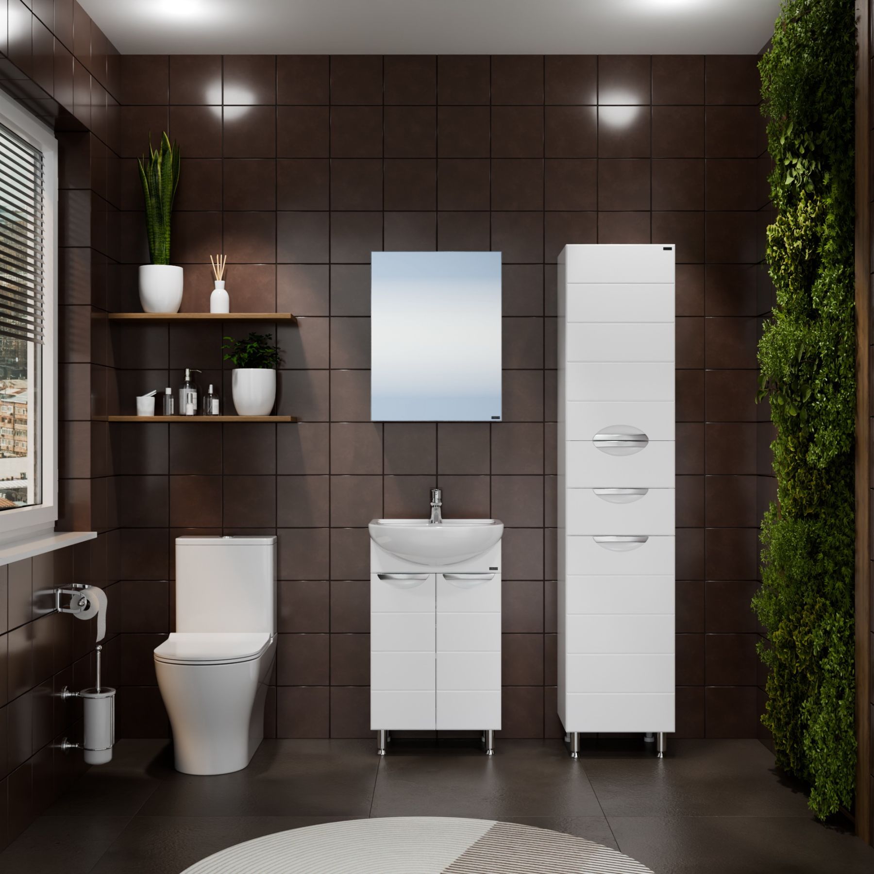 Комплектация: ручка хром - 3 шт., на дверках петли плавного закрывания - 2 шт., выдвижной ящик с шариковыми направляющими полного выдвижения - 1 шт., ножка хром - 2 шт., ножка пластик - 2 шт., бельевая корзина - 1шт Шкаф-пенал для ванной СаНта Родос 40 напольный. Фасады шкаф-пенала в ванную комнату изготовлены из МДФ, корпус колонны из влагостойкого ЛДСП. Фасад покрыт ПВХ пленкой. Пенал укомплектован несъемными полочками из ЛДСП, двумя хромированными ножками и двумя пластиковыми. Петли у колонны с плавным закрыванием. Открывание дверей распашное. Шкаф-пенал в ванную комнату вы можете приобрести в дополнение к тумбам из коллекции Санта Родос.