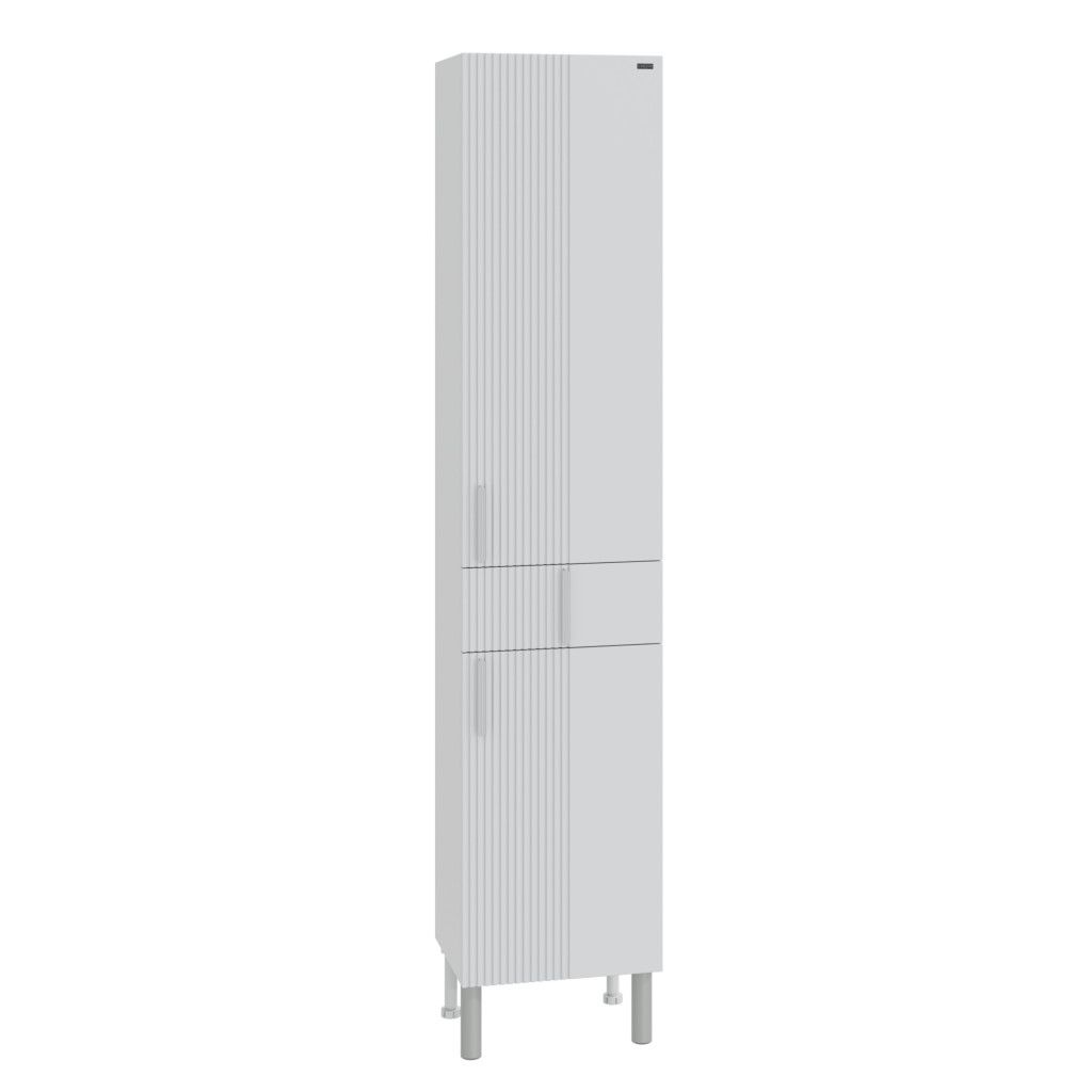Шкаф-пенал для ванной Вега 60 напольный. Покрыт эмалью с вертикальной фрезеровкой фасадов.