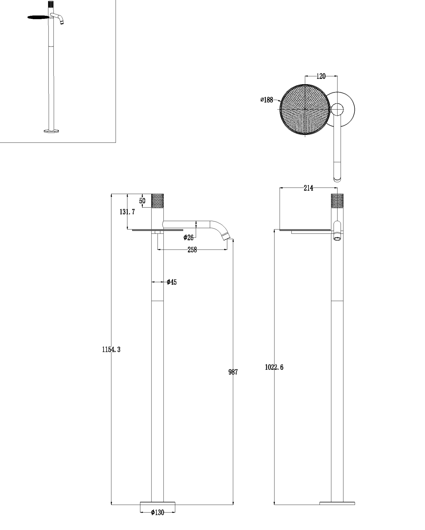 Напольный смеситель для раковины Boheme Stick Touch 120-SGM.2 оружейная сталь