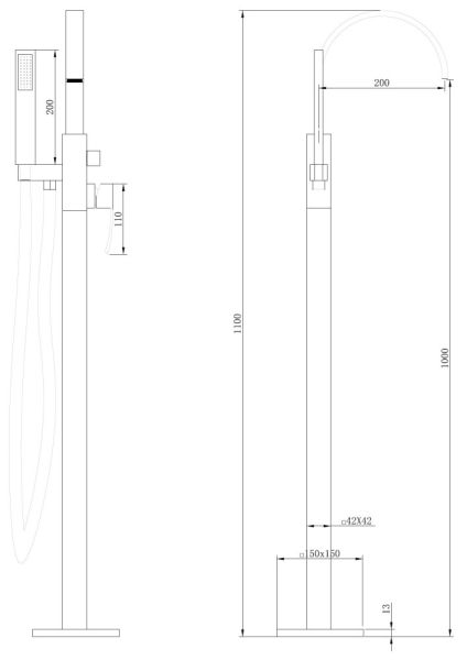 Напольный смеситель для ванны ABBER Wasserfall чёрный матовый AF8615B