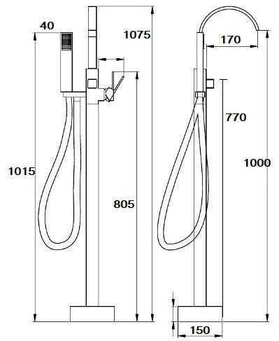 Смеситель RESIA Вlack для отдельностоящей ванны BOCH MANN BM9191 Картридж SCC Душевая штанга: Латунь Душевой шланг 1,5 м