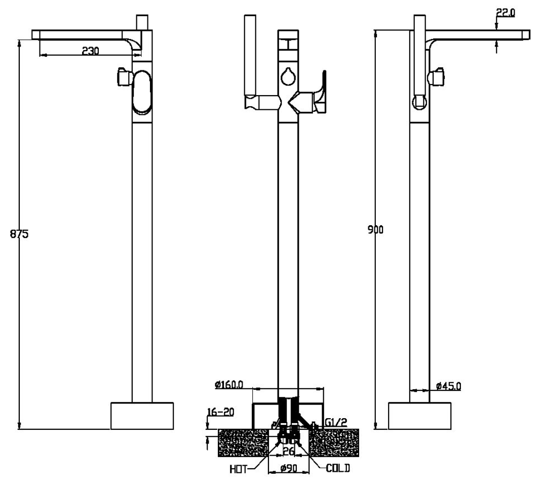 Смеситель для ванны Boheme Spectre 459-G напольный.Характеристики:Цвет: золото.