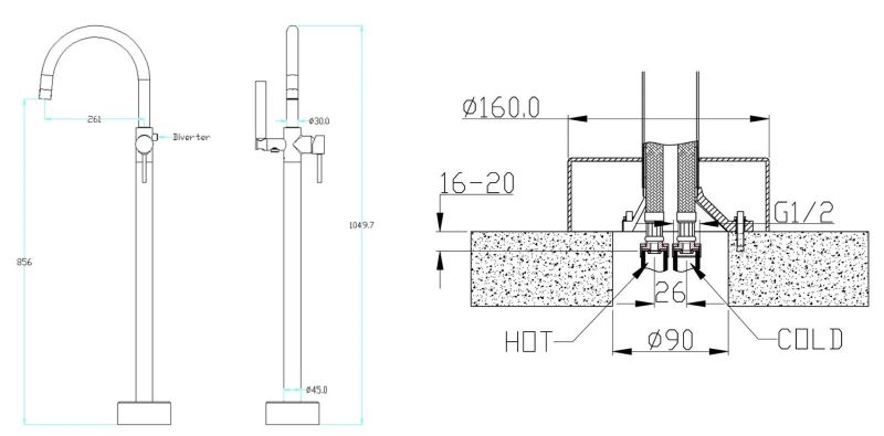 • Назначение: для отдельностоящей ванны