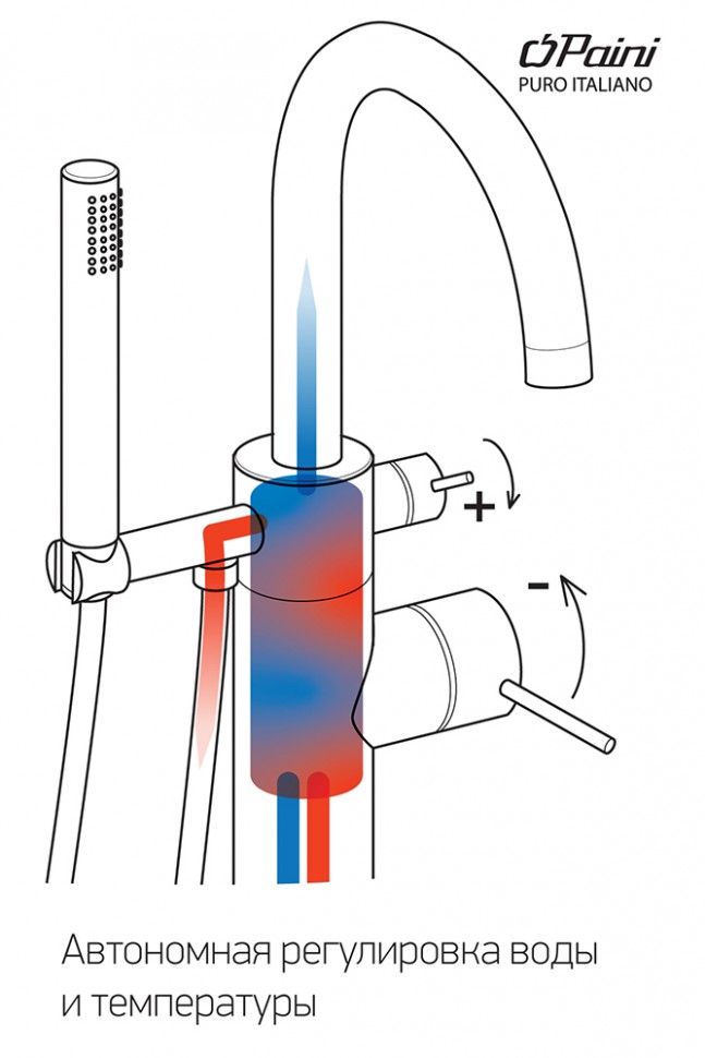 - Напольное расположение и высота смесителя позволяют установку в бассейн, сауну или станут новаторским решением для отдельно стоящей ванны.